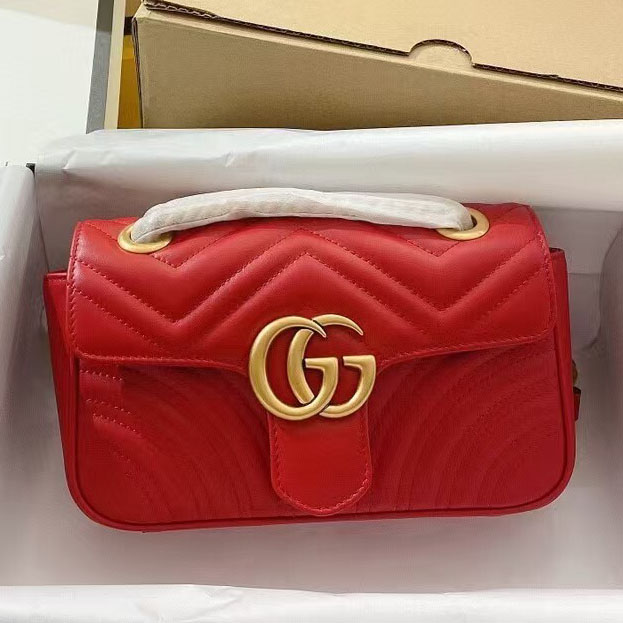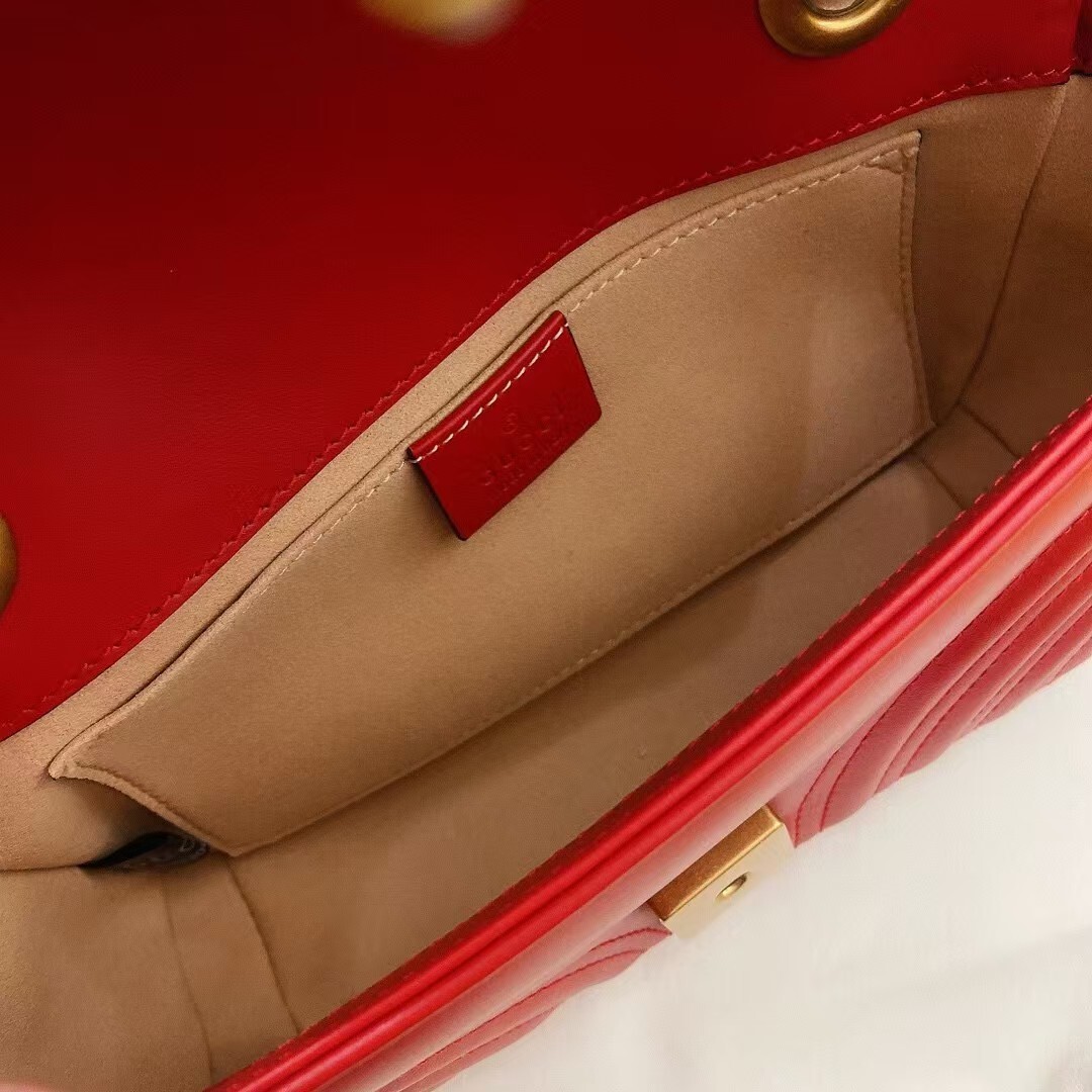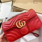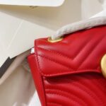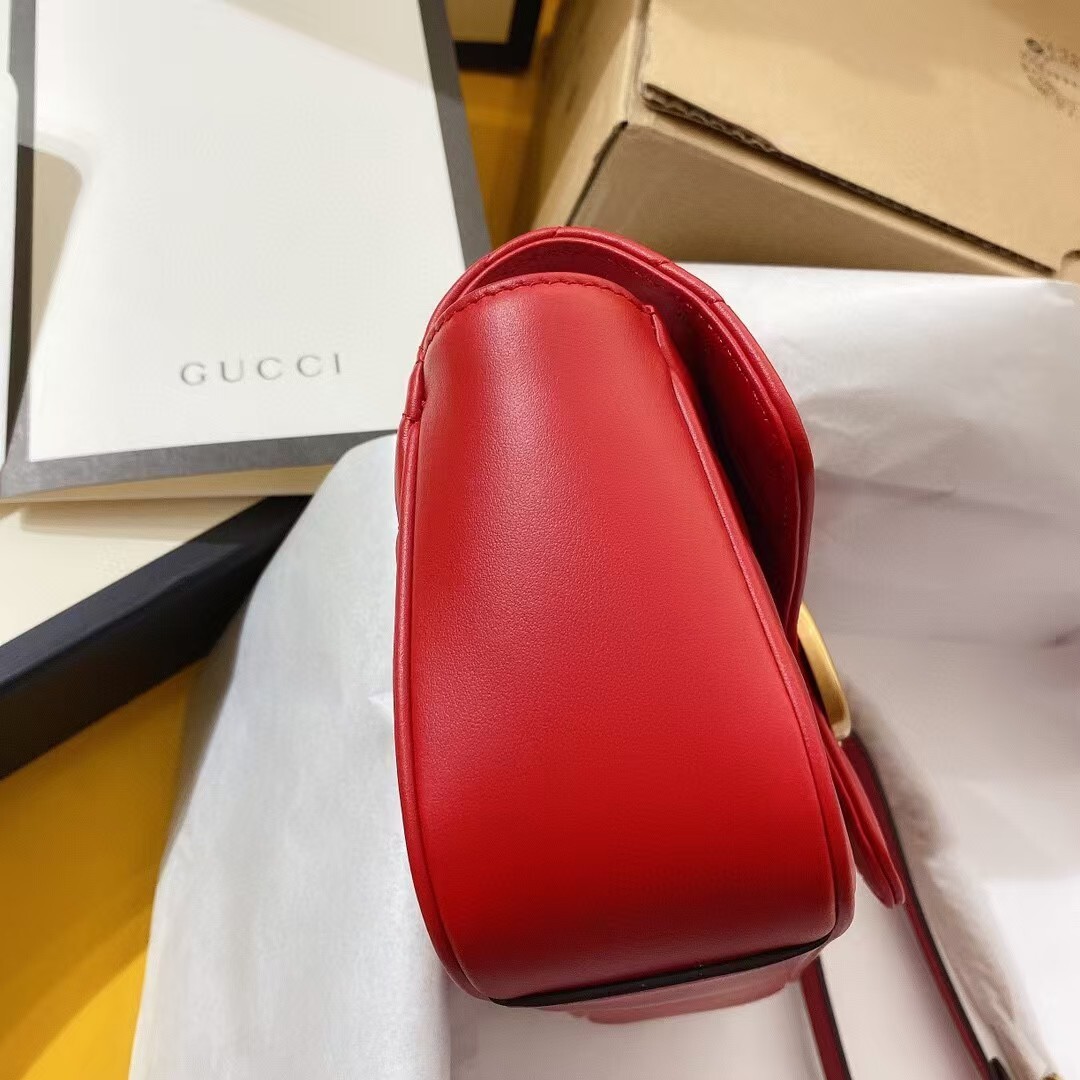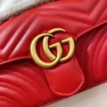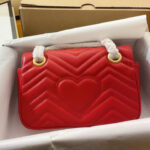 The striking red leather finish adds a vibrant, eye-catching pop of color to any outfit, elevating both casual streetwear and polished formal ensembles with effortless glamour. The matelassé quilting not only creates a luxurious, tactile texture but also ensures the bag maintains its shape beautifully over time. The GG Marmont line has become a global fashion icon, beloved by celebrities and style enthusiasts alike for its timeless design, exceptional craftsmanship, and versatile appeal.