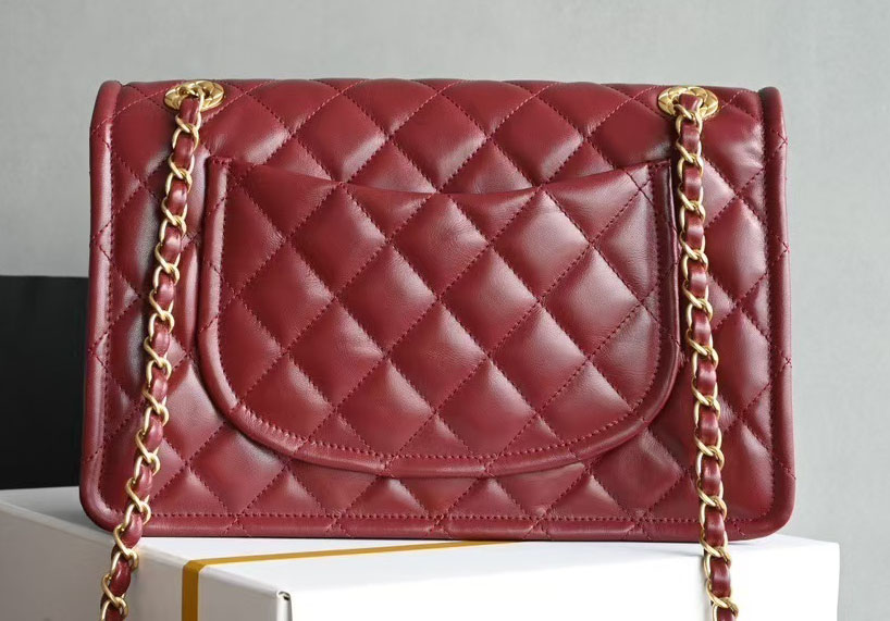 The ultimate icon of timeless Parisian luxury, the Chanel Classic Double Flap Bag is the definitive symbol of elegance, craftsmanship, and enduring style, reimagined here in a rich burgundy lambskin leather finish.