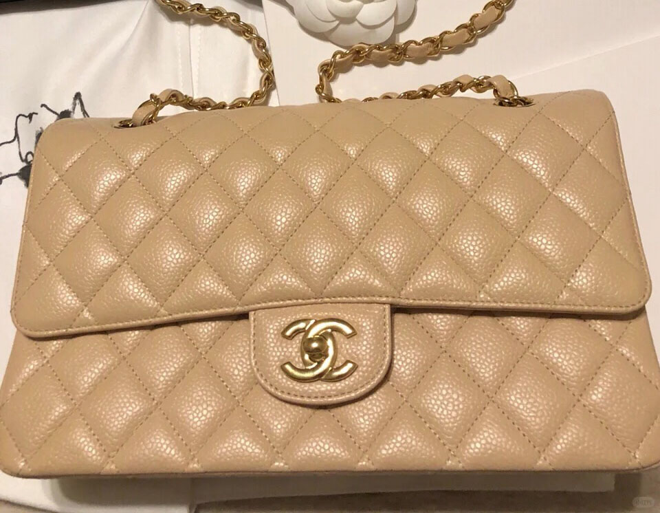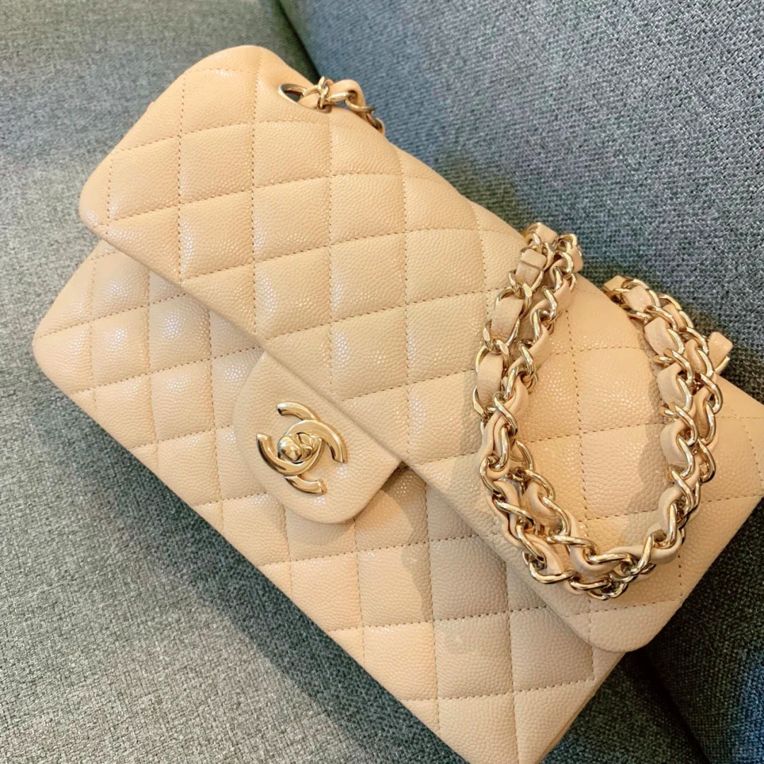 The ultimate icon of timeless Parisian luxury, the Chanel Classic Double Flap Bag is the definitive symbol of elegance, craftsmanship, and enduring style, reimagined here in a soft beige caviar leather finish.