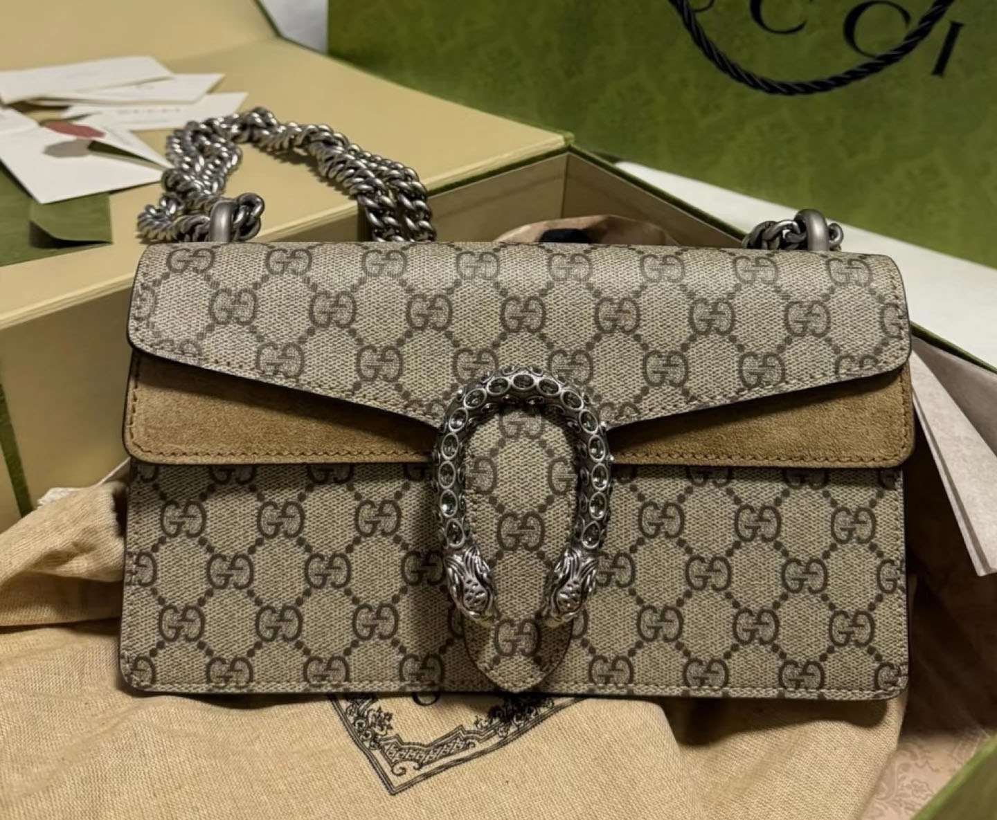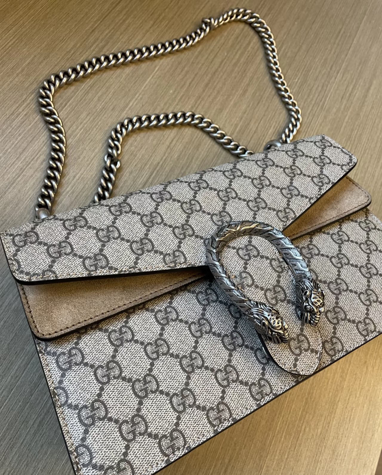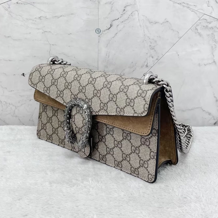 The GG Supreme monogram, a cornerstone of Gucci’s heritage since 1930, adds a timeless, recognizable touch to any outfit, while the neutral beige and ebony colorway pairs effortlessly with every style, from casual streetwear to polished office ensembles. The Dionysus line has become a global fashion icon, beloved by celebrities and style enthusiasts alike for its bold, distinctive design and exceptional craftsmanship.