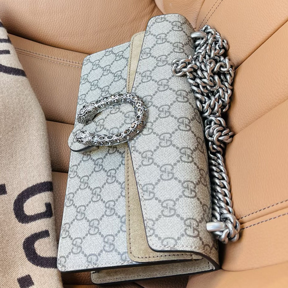 Available in a range of versatile sizes—from the compact Super Mini, perfect for evening outings, to the roomy Medium, ideal for daily commuting—each Dionysus bag features a detachable, adjustable silver-tone chain strap, allowing you to wear it as a chic crossbody, a sleek shoulder bag, or a sophisticated clutch for formal events. Inside, you’ll find a spacious main compartment and multiple card slots, keeping your essentials organized while maintaining a slim, elegant silhouette. The canvas is paired with premium leather trim, adding a luxurious, durable finish that ages beautifully with daily use.