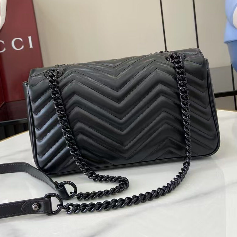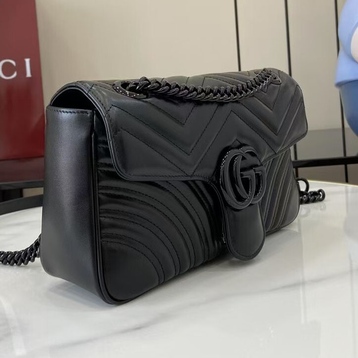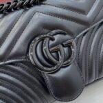 Elevate your luxury wardrobe with the iconic Gucci GG Marmont Matelassé Leather Shoulder Bag in a sleek all-black finish, a masterclass in Italian craftsmanship and modern edge. Crafted from supple, premium calfskin leather with Gucci’s signature chevron-quilted matelassé texture, this bag is defined by its matte black-toned double G hardware and matching chain strap, creating a monochromatic, head-turning aesthetic that exudes understated power.