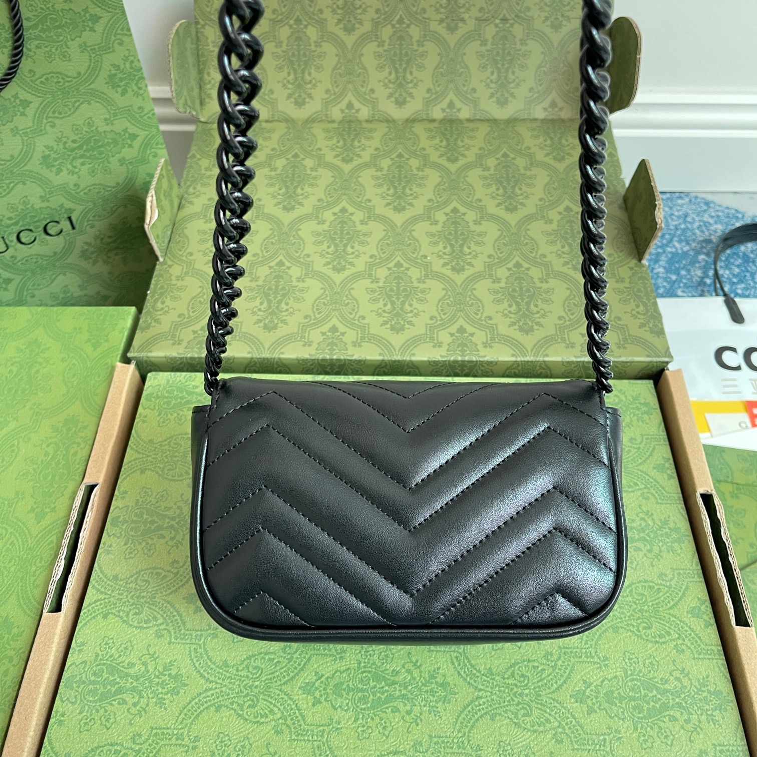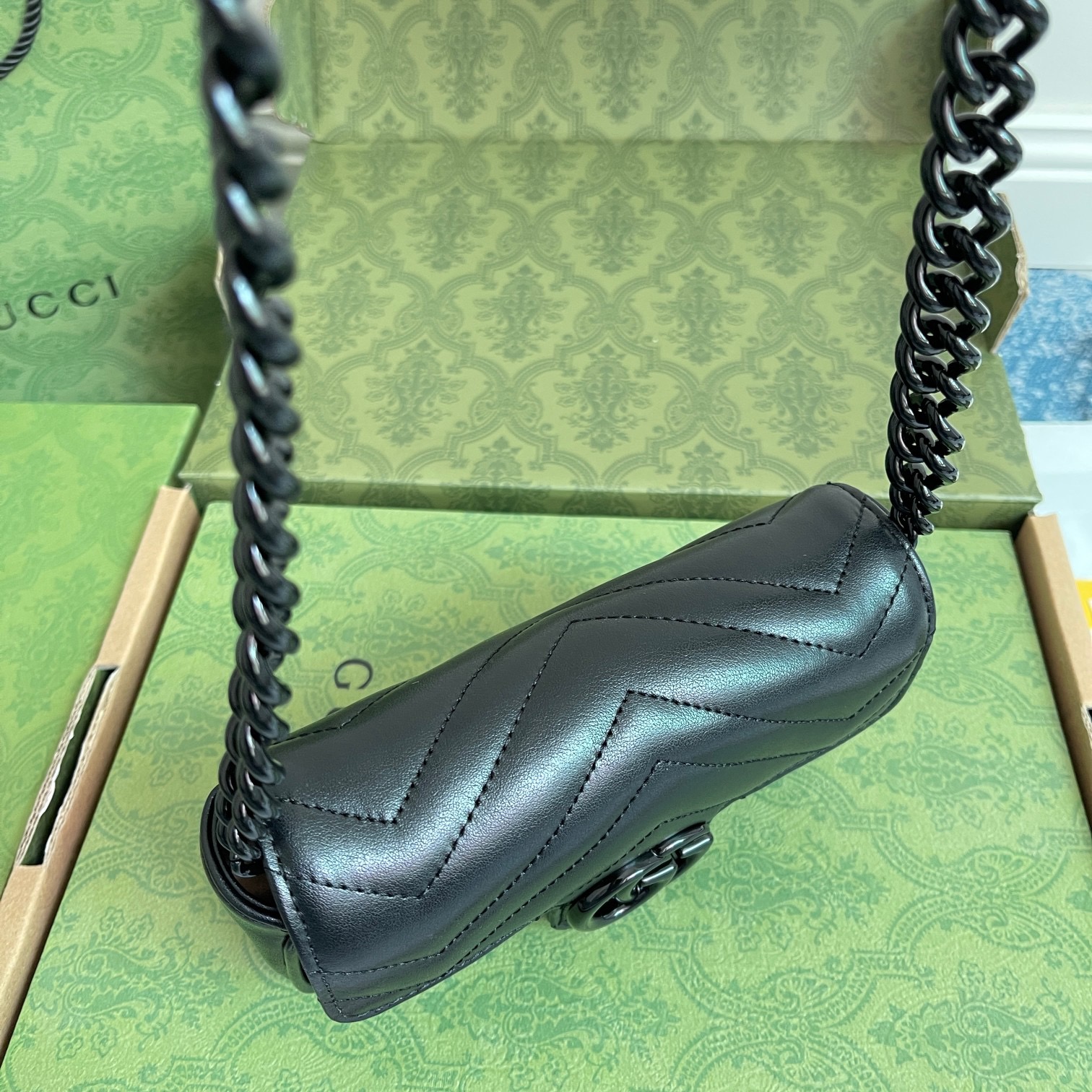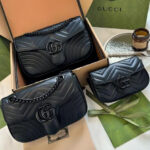 The all-black design offers a timeless, versatile aesthetic that pairs effortlessly with every outfit, from casual streetwear to polished office ensembles. The matelassé quilting not only creates a luxurious, tactile texture but also ensures the bag maintains its shape beautifully over time. The GG Marmont line has become a global fashion icon, beloved by celebrities and style enthusiasts alike for its timeless design, exceptional craftsmanship, and versatile appeal.