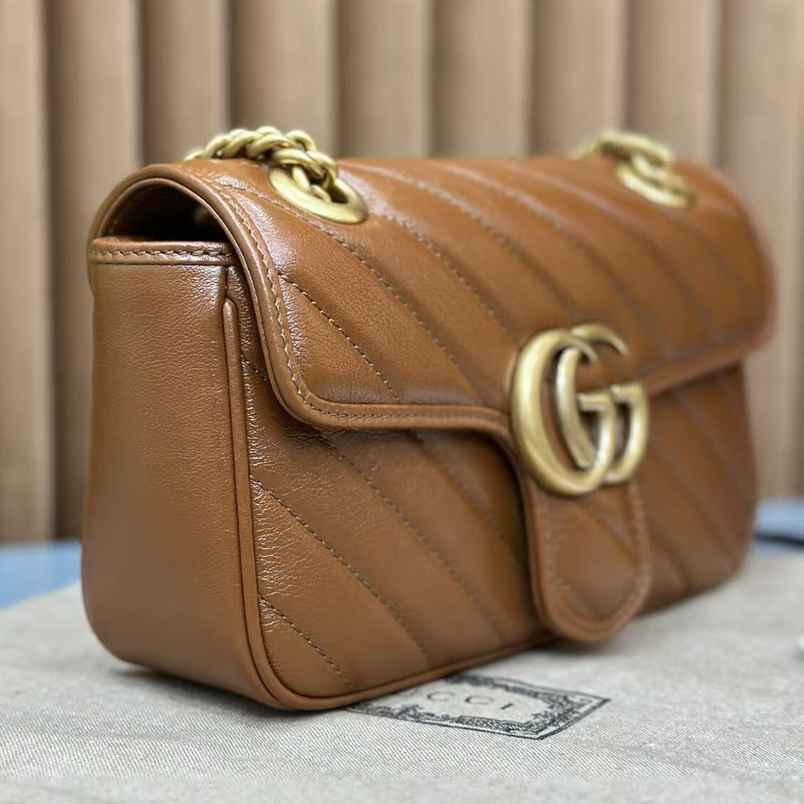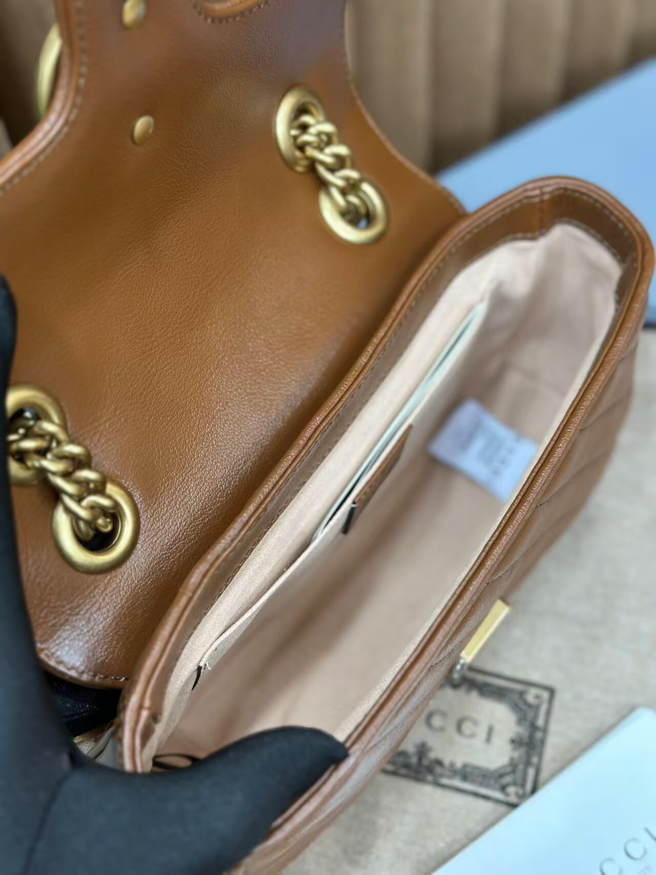 The warm brown/caramel hue exudes timeless sophistication, complementing both casual streetwear and polished formal ensembles with effortless ease. The matelassé quilting adds a luxurious tactile texture while ensuring the bag maintains its shape beautifully over time. As a global fashion icon, the GG Marmont line is beloved by celebrities and style enthusiasts alike for its blend of classic design, exceptional craftsmanship, and modern versatility.
