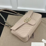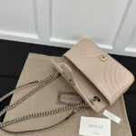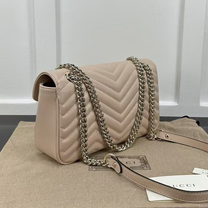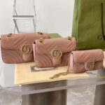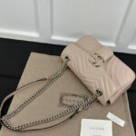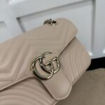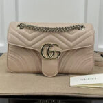 The soft dusty pink leather finish adds a romantic, feminine touch to any outfit, elevating both casual streetwear and polished formal ensembles with effortless glamour. The matelassé quilting not only creates a luxurious, tactile texture but also ensures the bag maintains its shape beautifully over time. The GG Marmont line has become a global fashion icon, beloved by celebrities and style enthusiasts alike for its timeless design, exceptional craftsmanship, and versatile appeal.