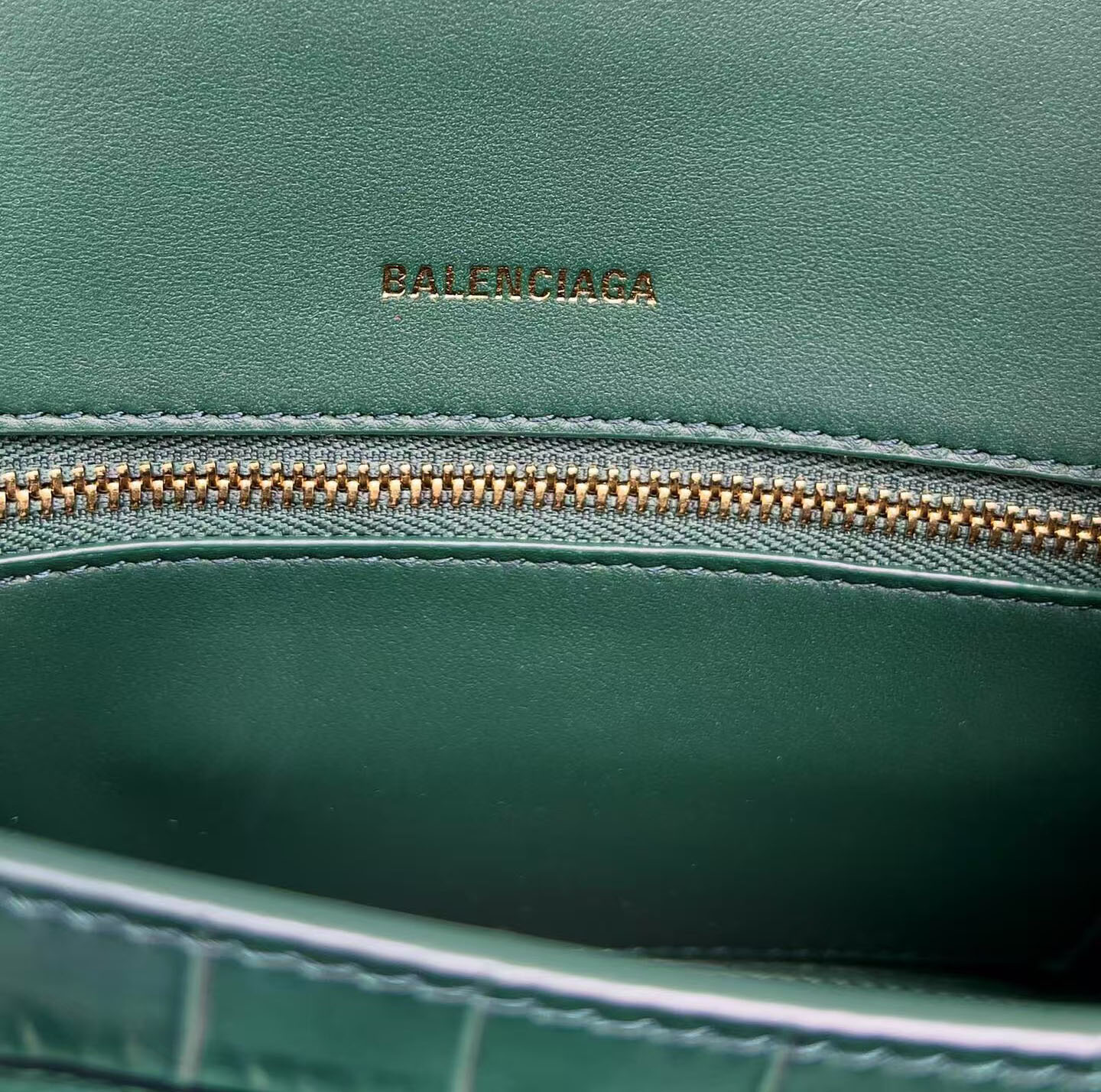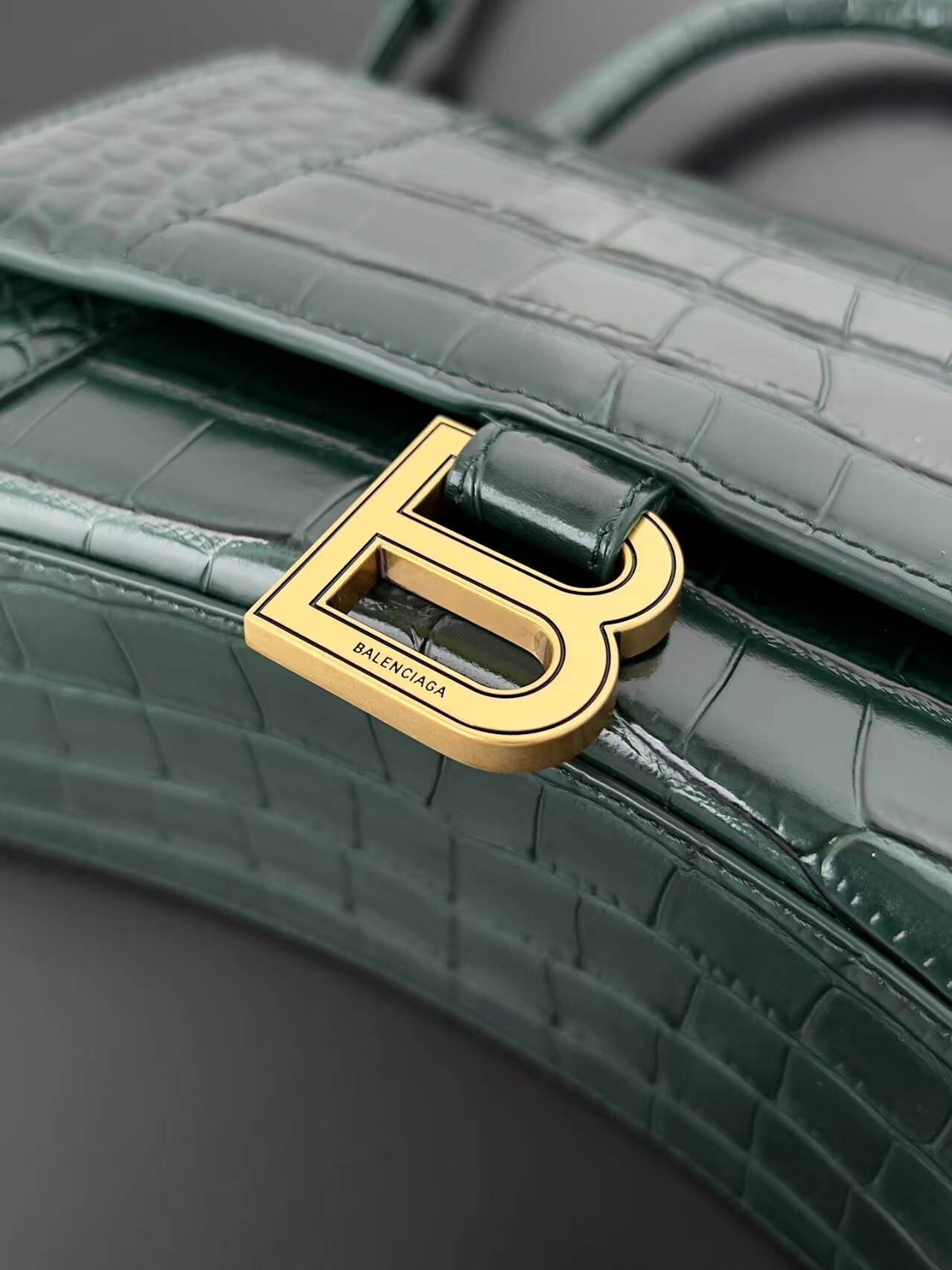 Expertly crafted from premium calfskin leather, this statement piece features a luxurious crocodile embossment and a soft, airy light blue hue that balances bold high-fashion edge with timeless femininity. Anchoring the design is Balenciaga’s iconic oversized, antique gold-tone “B” logo plaque on the front flap—an instantly recognizable symbol of the house’s avant-garde, boundary-pushing aesthetic.