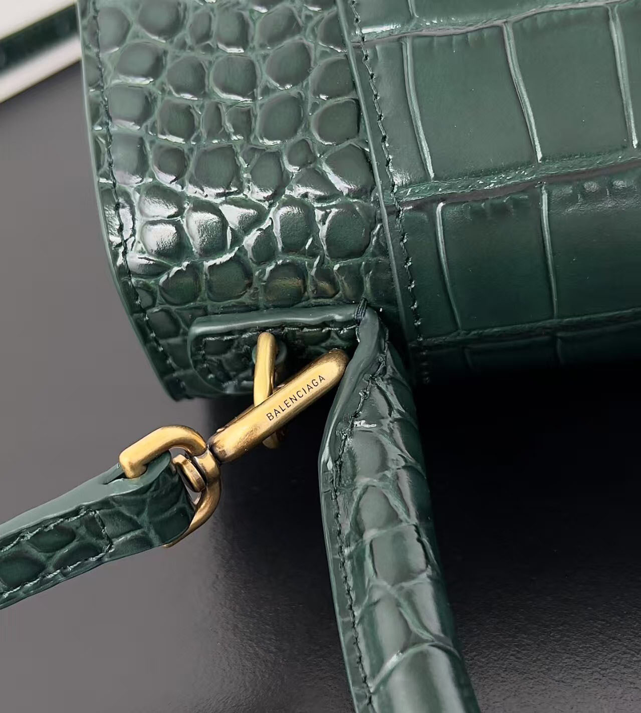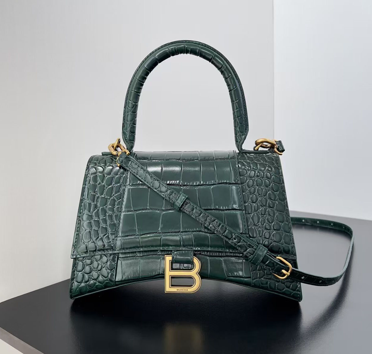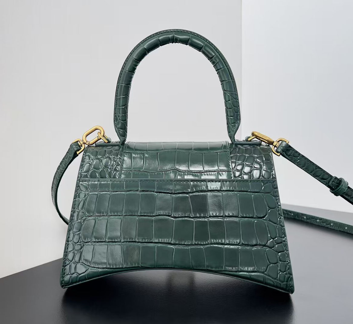Both sizes feature a sleek top handle for polished hand carry, plus a detachable, adjustable leather shoulder strap that enables comfortable crossbody or shoulder wear, transitioning seamlessly from day to night. Finished with precise hand-stitching, durable hardware, and Balenciaga’s legendary attention to detail, these Hourglass bags are more than just accessories—they are timeless investment pieces that elevate every outfit, adding a touch of modern luxury and cool-girl glamour to any look, season after season.