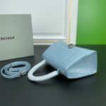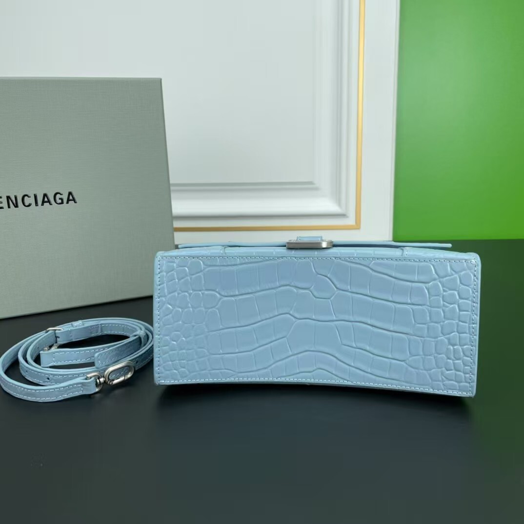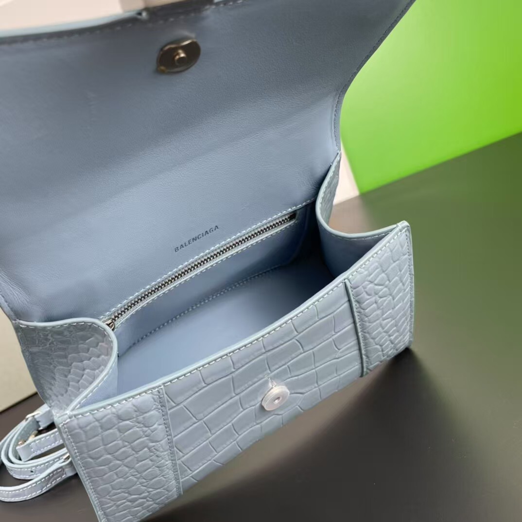 Balenciaga Hourglass Croc-Embossed Light Blue Top Handle Handbag