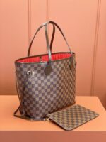 The Louis Vuitton Neverfull MM is the ultimate iconic luxury tote, designed to blend timeless House heritage with unbeatable everyday functionality. Crafted from Louis Vuitton’s signature coated canvas—available in the classic Monogram pattern (left) or the sophisticated Damier Ebene check (right)—this tote is finished with premium natural cowhide leather trim, gold-tone hardware, and a colorful textile interior lining.