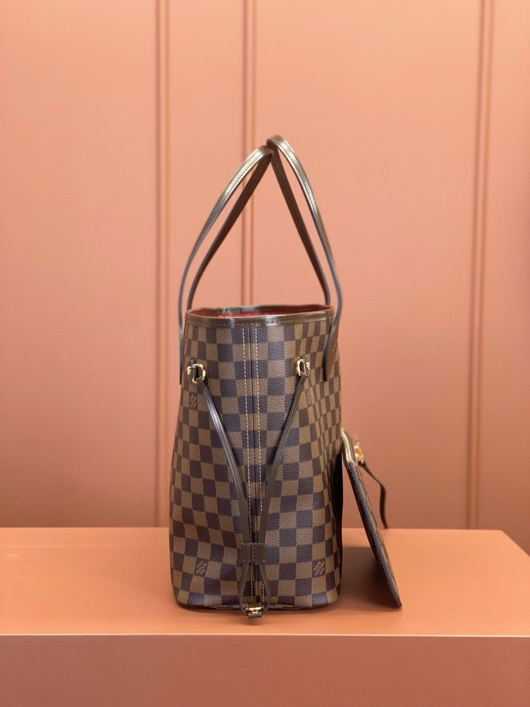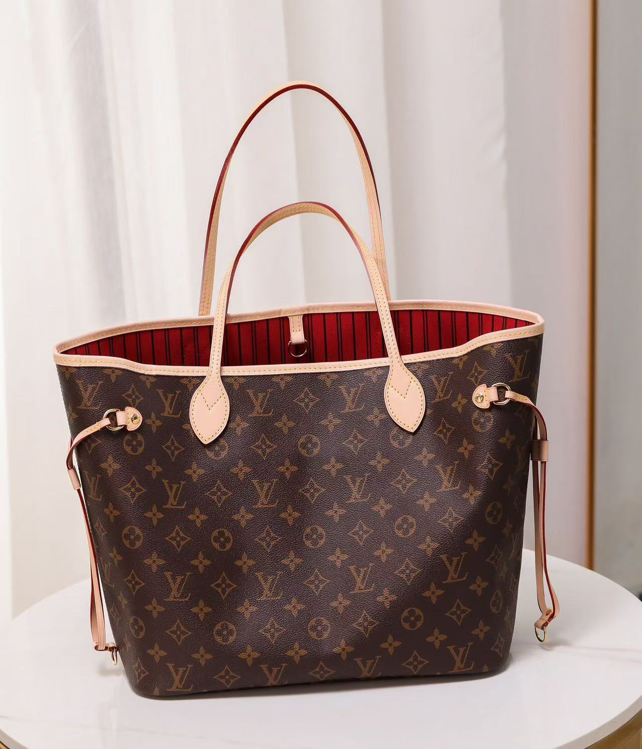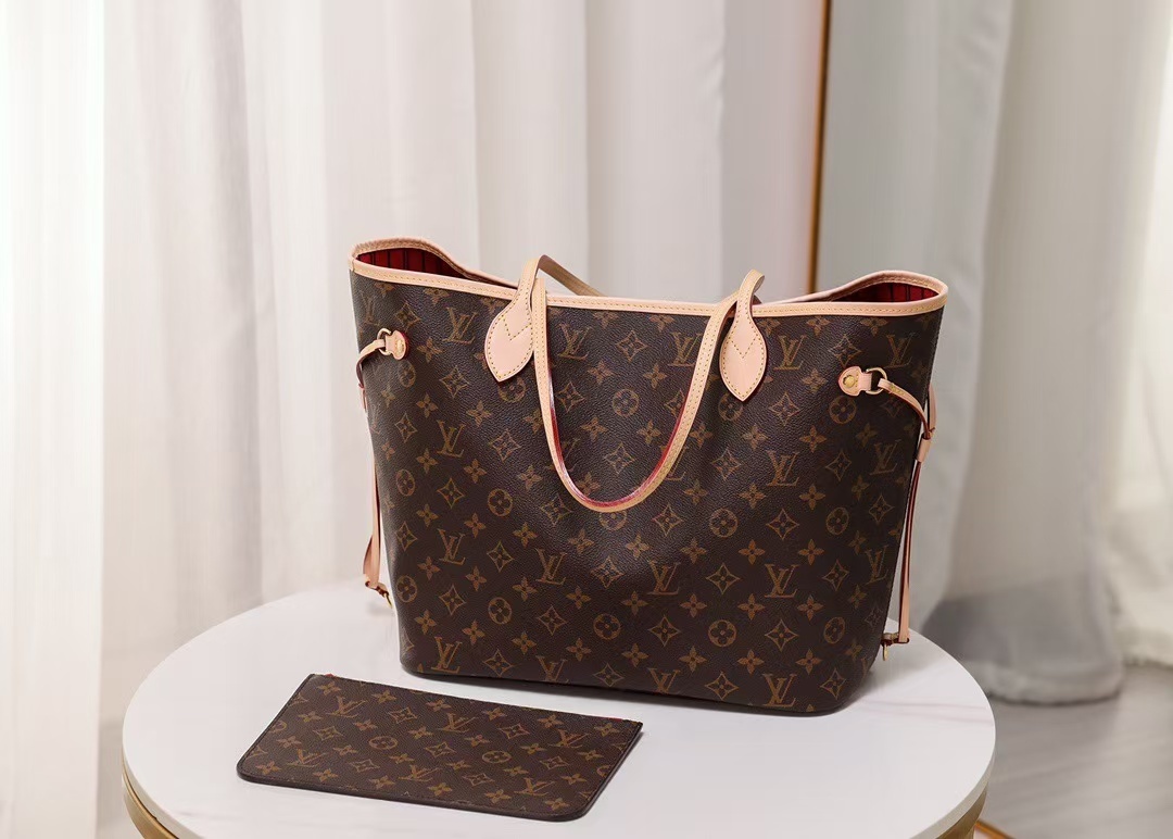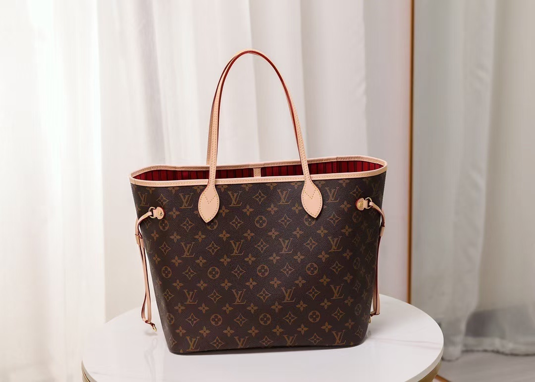 Featuring adjustable side drawstrings, the Neverfull lets you customize its silhouette: cinch the laces for a sleek, structured look, or loosen them for a roomy, casual carry that lives up to its “never full” name. The spacious main compartment easily fits a 13-inch laptop, daily essentials, and work or travel gear, while the removable zippered pouch doubles as a clutch, wallet, or extra interior pocket to keep small items organized. Slim, comfortable leather handles slip effortlessly over the shoulder or arm, making it perfect for commuting, shopping, travel, or everyday use.