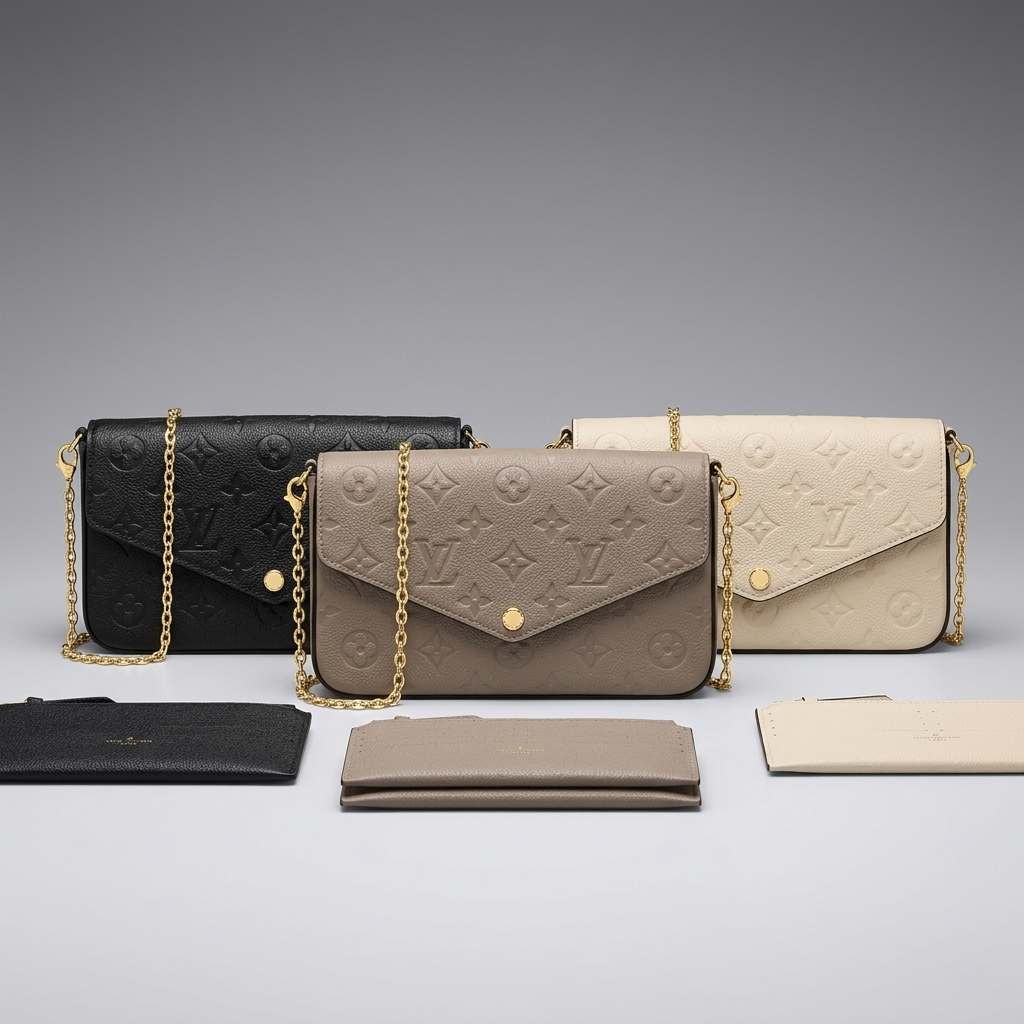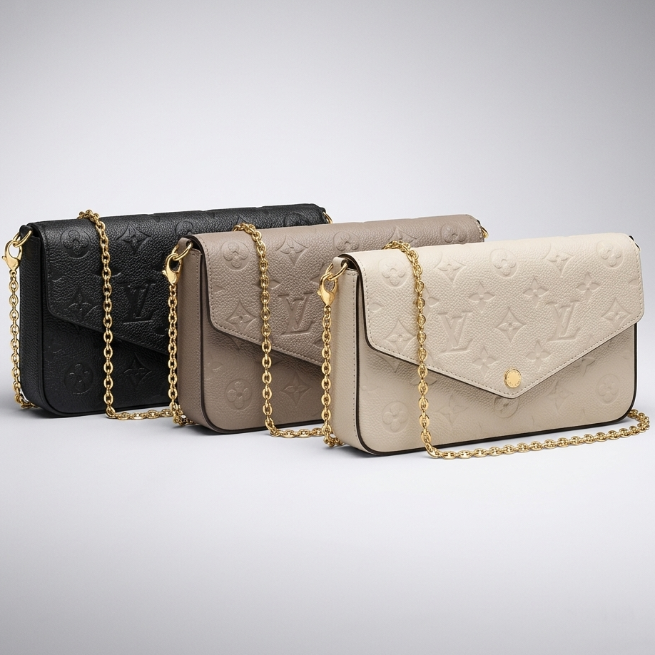 This authentic Louis Vuitton Pochette Félicie (Monogram Empreinte Leather) is in excellent condition, with minimal wear, and comes from a smoke-free home. Available in timeless Black, elegant Cream, and sophisticated Taupe, this must-have luxury accessory is ready to become your new go-to for every occasion.