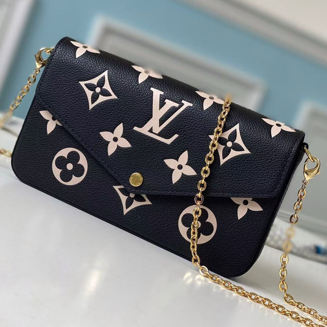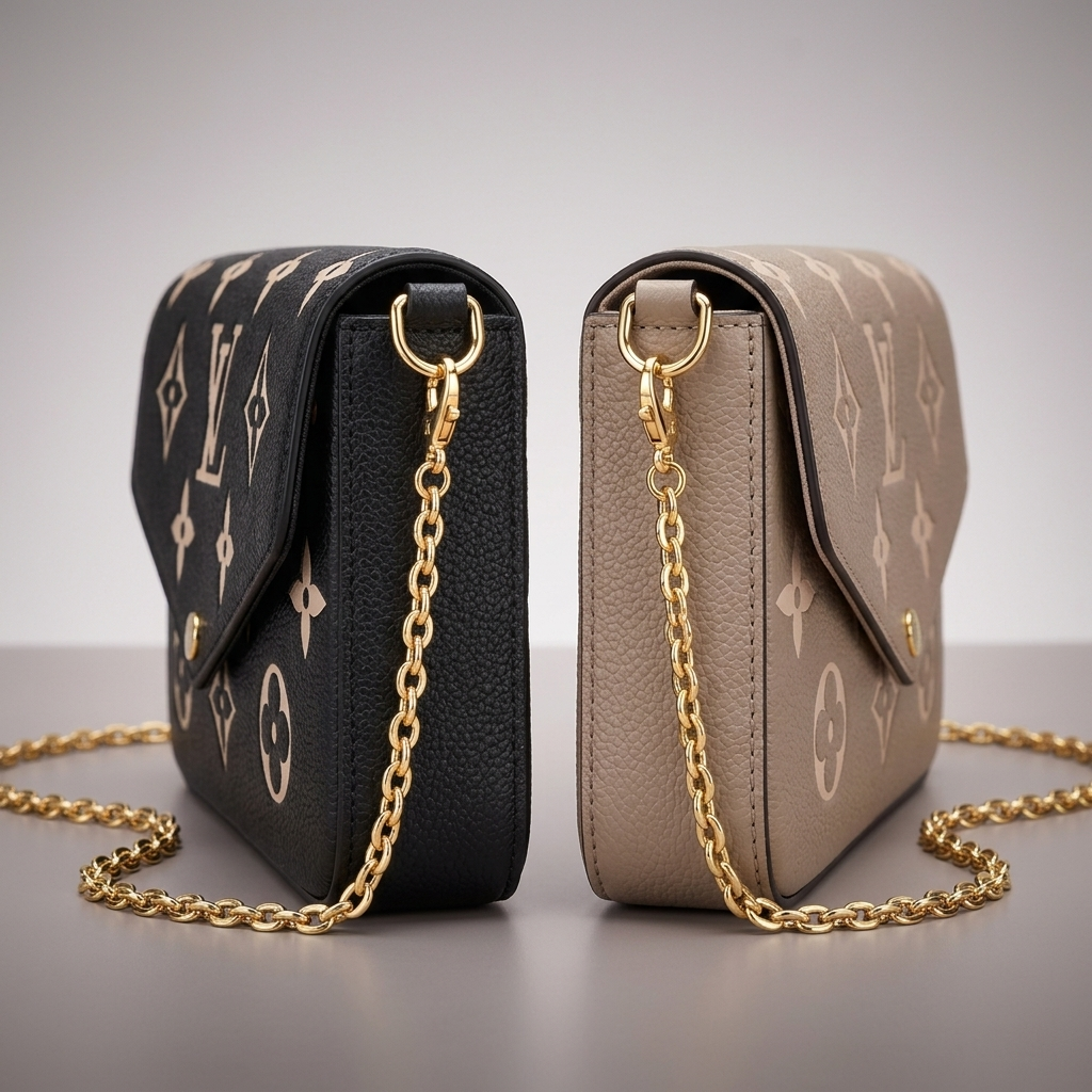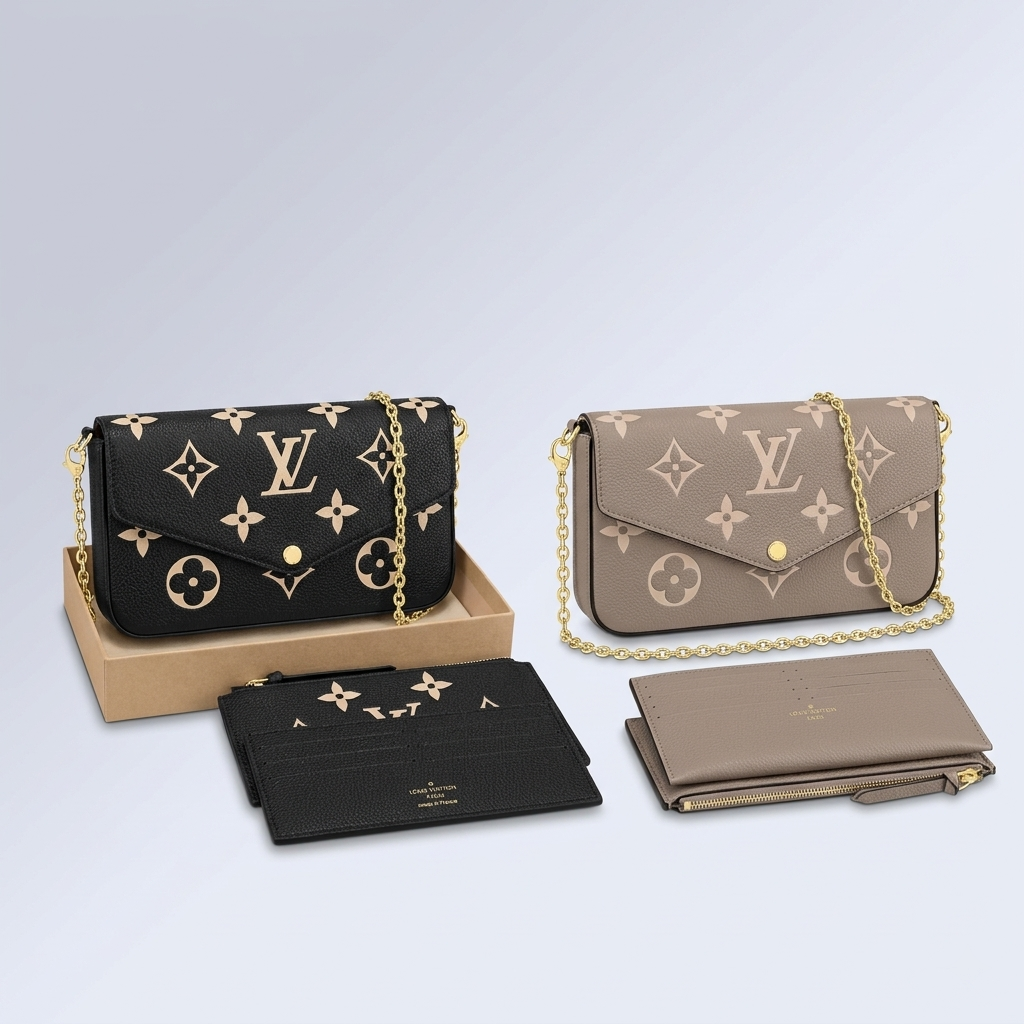 Embossed with Louis Vuitton’s iconic Monogram pattern in a bold two-tone finish, this compact envelope-style pouch features a polished gold-tone snap closure, a nod to the House’s timeless Parisian elegance. The true magic of the Félicie Pochette lies in its 3-in-1 functionality: it comes with two removable, matching leather card inserts, letting you customize the bag to your needs. Use it as a spacious clutch, a sleek crossbody with the detachable gold-tone chain strap, or remove the inserts to carry it as a minimalist wallet—perfect for transitioning from day to night.