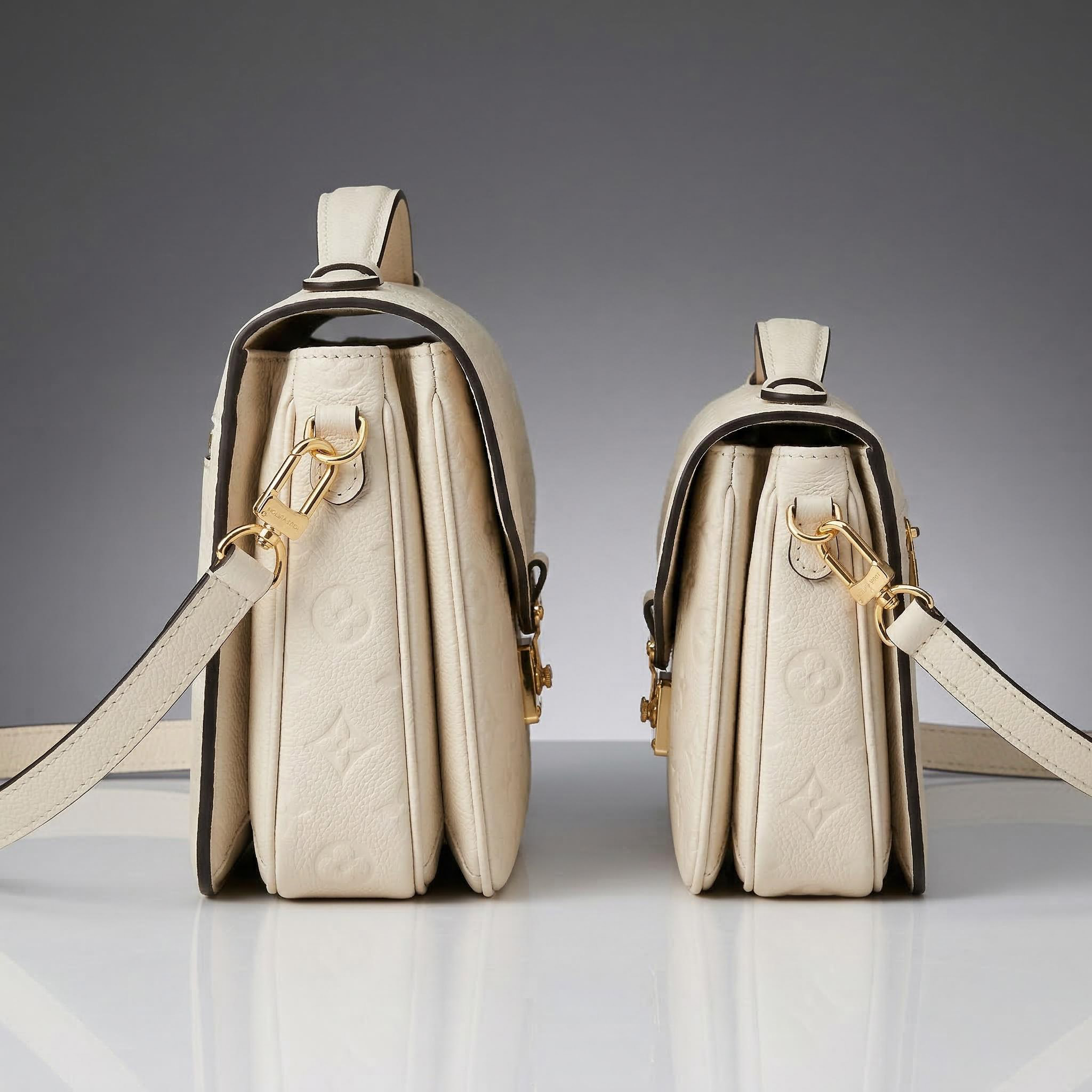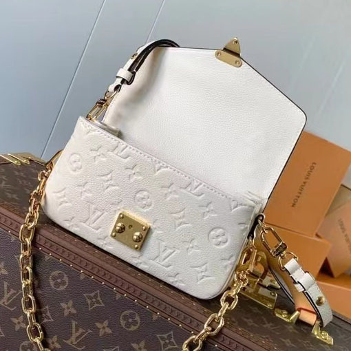 A timeless duo of Parisian luxury, the Louis Vuitton Pochette Métis East West and Micro Métis reimagine the House’s legendary satchel silhouette for modern versatility, crafted in premium Monogram Empreinte grained cowhide leather in a sleek, elegant cream finish.