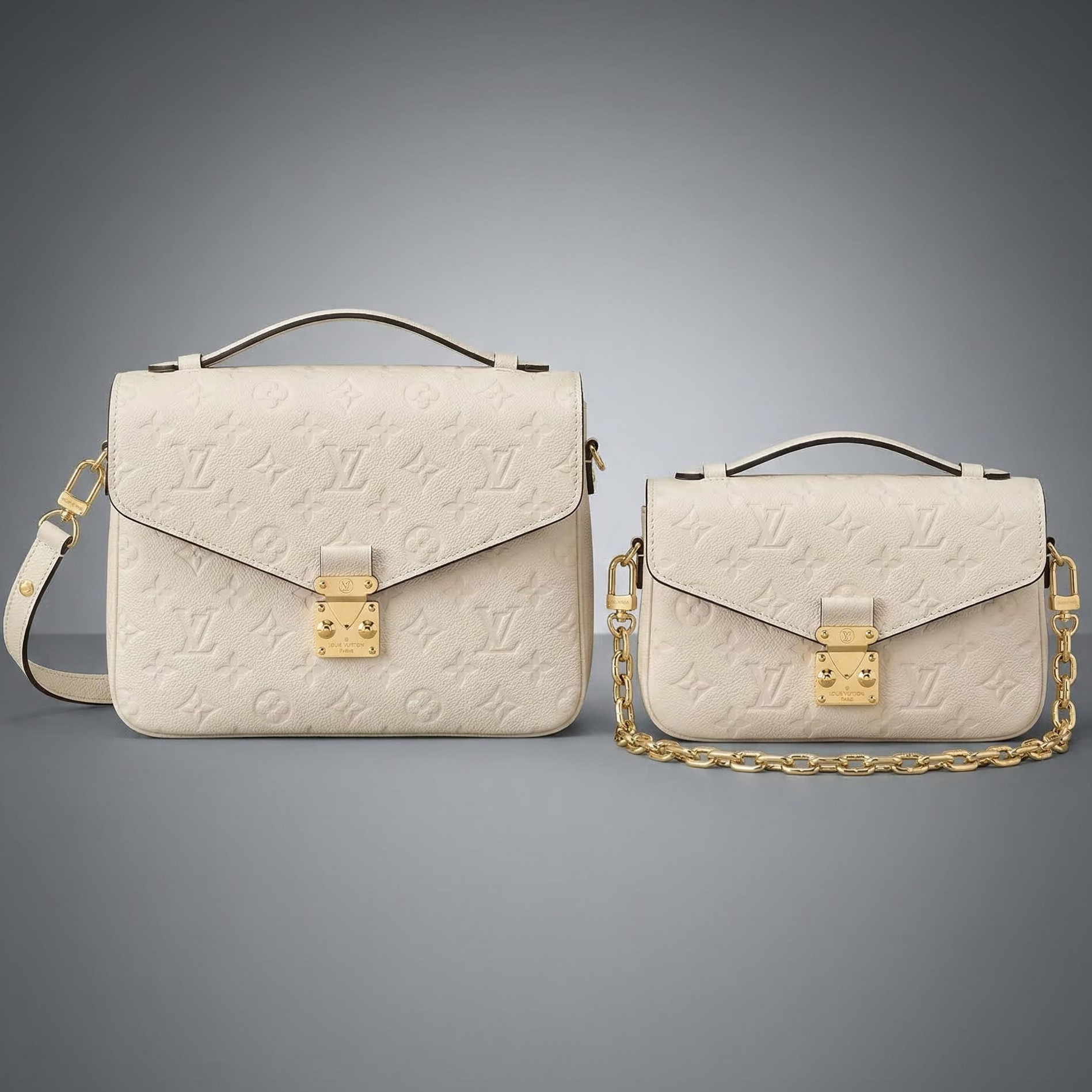 Embossed with Louis Vuitton’s iconic Monogram pattern, both styles feature the signature polished gold-tone S-lock closure, a nod to the brand’s 19th-century trunk-making heritage and unrivaled craftsmanship. The full-size Pochette Métis East West delivers a structured, spacious silhouette with a thoughtfully organized interior, perfect for stowing all your daily essentials—phone, cardholder, lipstick, and more—while maintaining a polished, streamlined look. It comes with a sleek top handle for hand carry, plus a detachable gold-tone chain strap and leather shoulder strap for customizable shoulder, cross-body, or clutch wear, making it ideal for transitioning from work commutes to evening outings.