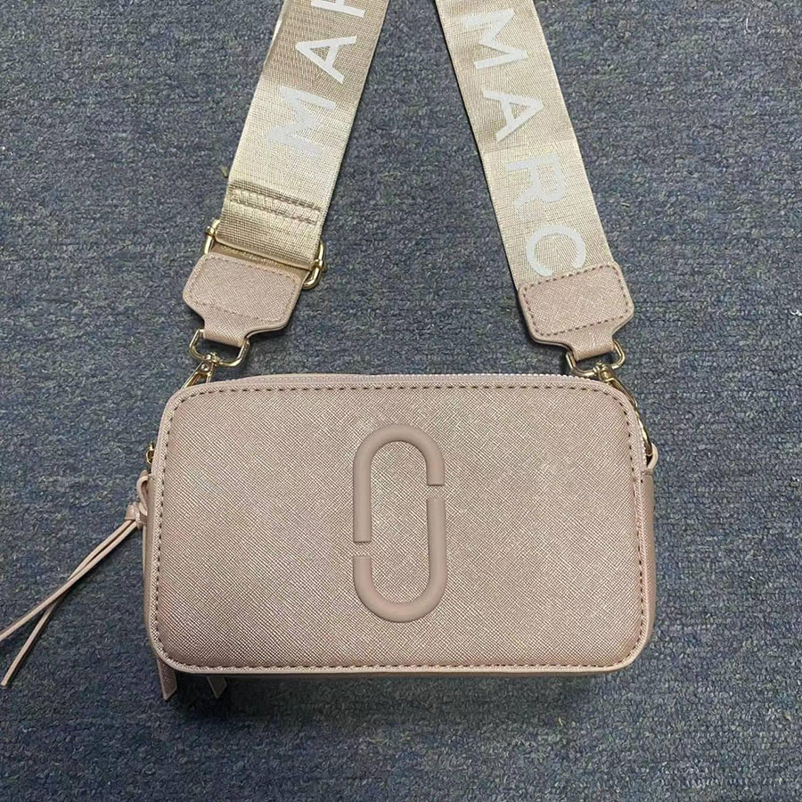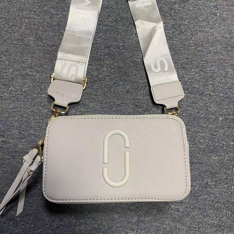 Crafted from premium smooth leather (or durable coated canvas for printed styles), this iconic mini camera bag features the signature oversized “Double J” logo plaque on the front, a instantly recognizable symbol of Marc Jacobs’ playful, contemporary aesthetic. Each bag comes with a wide, adjustable webbed shoulder strap printed with the “MARC JACOBS” logo, finished with polished gold-tone hardware that adds a luxe touch to the casual design.