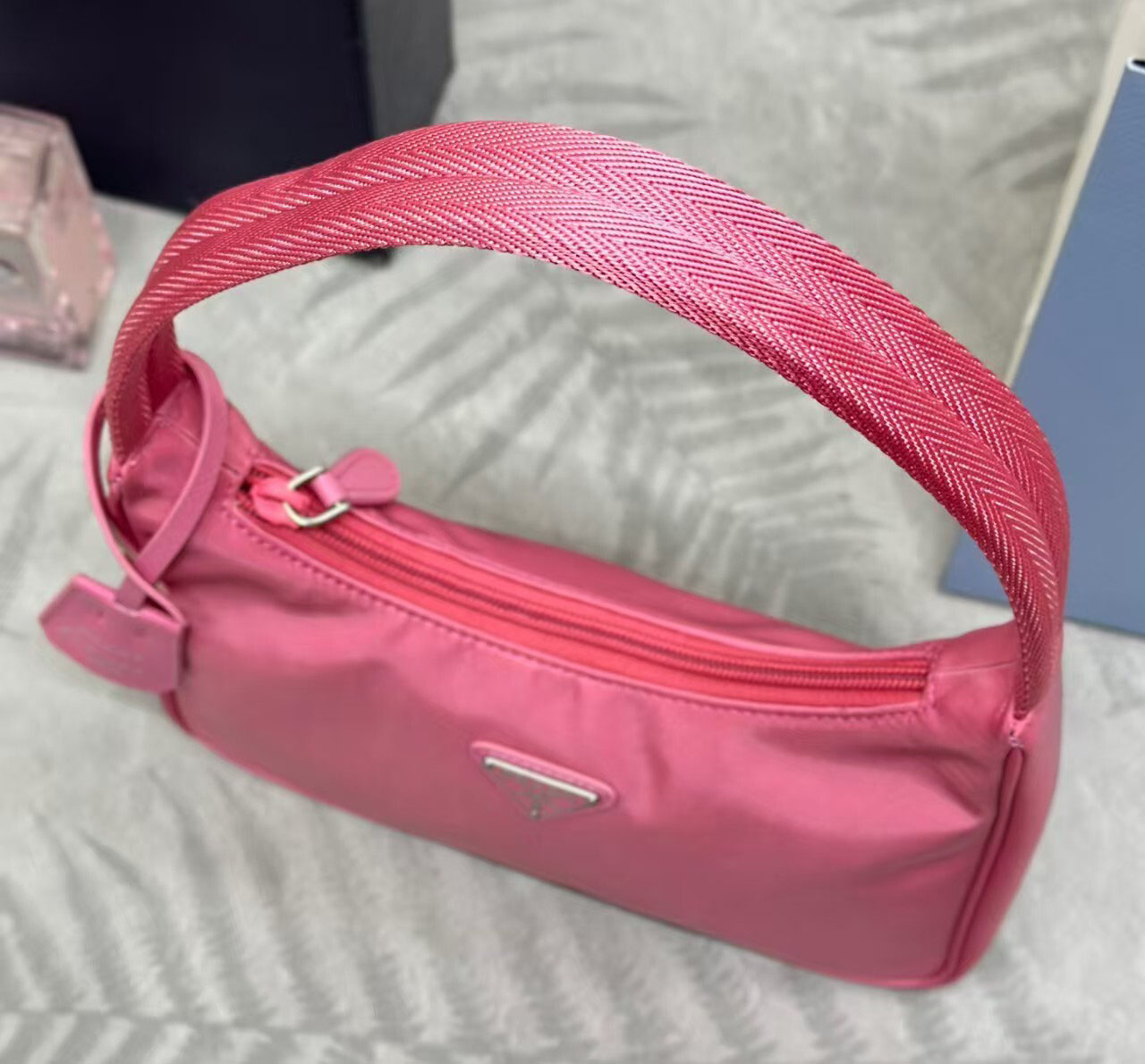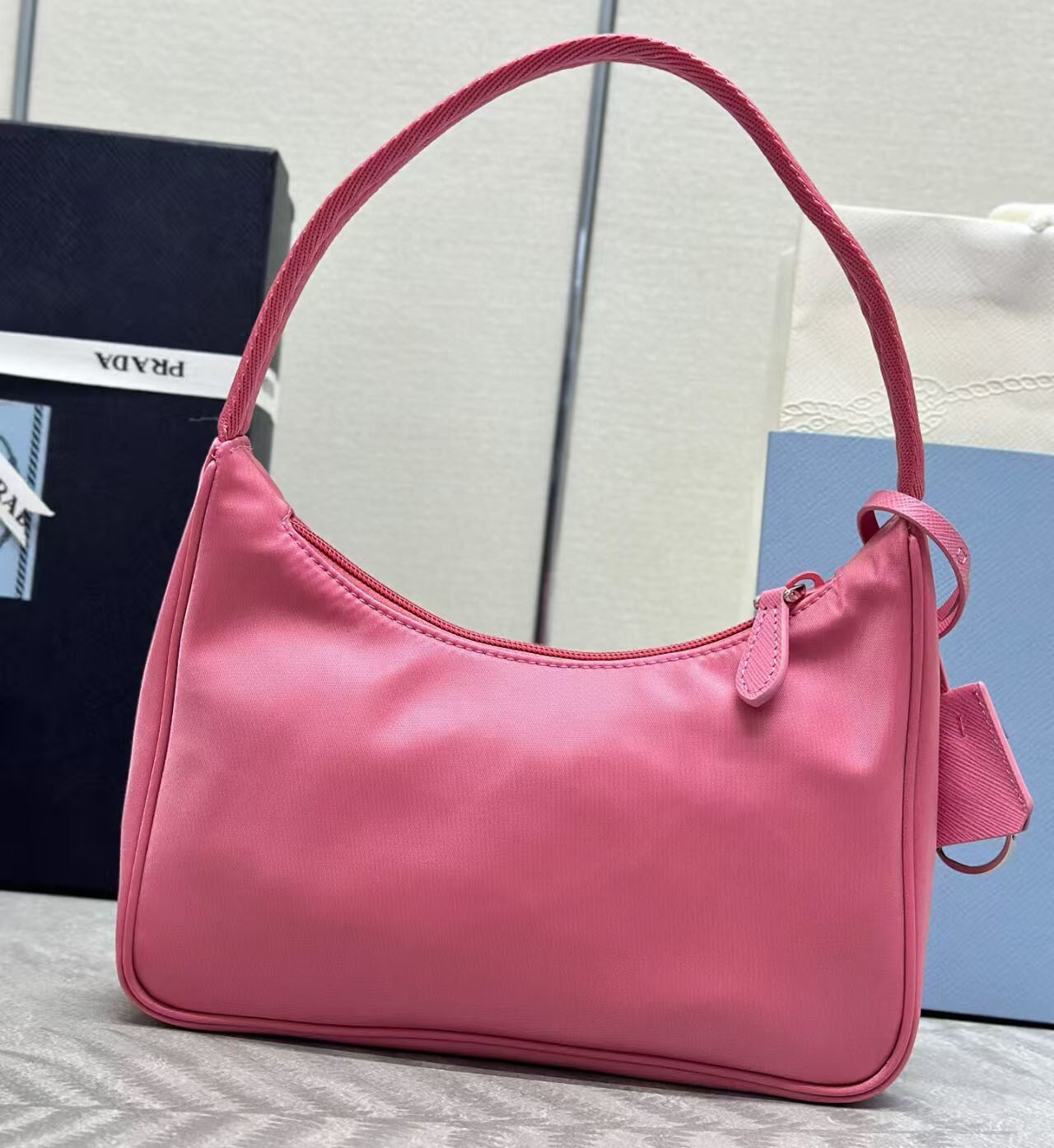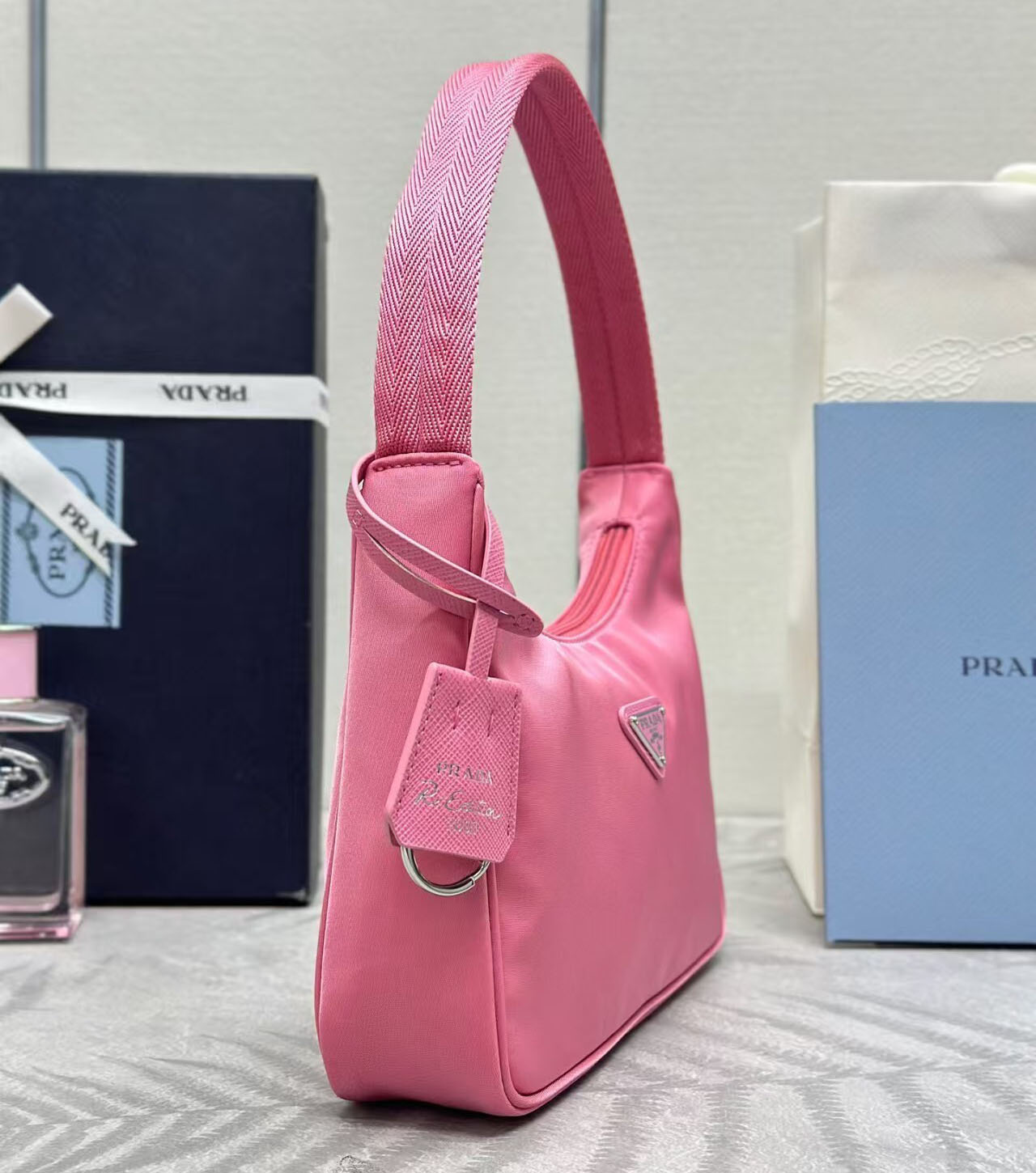 Elevate your luxury wardrobe with the iconic Prada Re-Edition 2000 Nylon Mini Hobo Bag in vibrant pink, a timeless revival of Prada’s legendary 2000s Y2K design, reimagined for the modern fashion lover. Crafted from Prada’s signature lightweight, durable nylon fabric, this hobo bag is instantly recognizable by its iconic enameled metal triangle logo plaque on the front, a symbol of Prada’s unparalleled heritage and Italian craftsmanship.