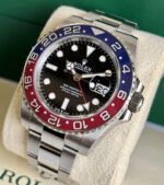 The Rolex Oyster Perpetual GMT-Master II, reference 126710BLRO, affectionately known as the “Pepsi”, is an iconic luxury travel watch celebrated for its legendary red-and-blue Cerachrom ceramic bezel. Forged from Rolex’s exclusive 904L stainless steel, the 40mm Oyster case delivers exceptional corrosion resistance and a 100-meter water resistance rating, perfect for daily wear and global adventures.