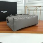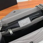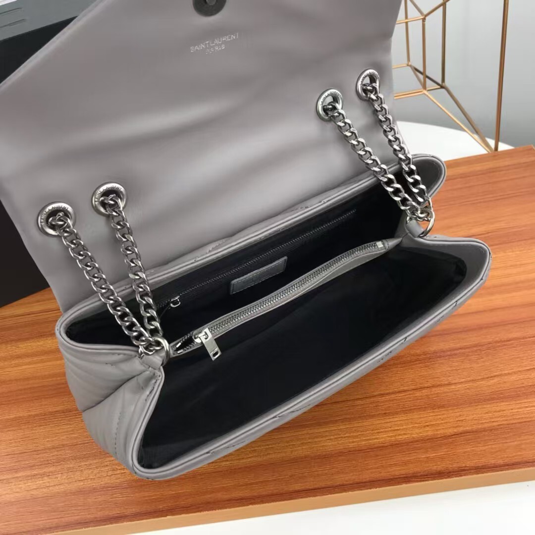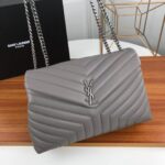 Elevate your luxury wardrobe with the iconic Saint Laurent Loulou Matelassé Leather Shoulder Bag in sophisticated grey with polished silver hardware, a masterpiece of Parisian elegance and Italian craftsmanship. Crafted from premium, buttery-soft calfskin leather with YSL’s signature chevron-quilted matelassé texture, this flap bag is instantly recognizable by its sleek silver-tone interlocking YSL logo plaque on the front, a symbol of Saint Laurent’s unparalleled heritage and timeless style.