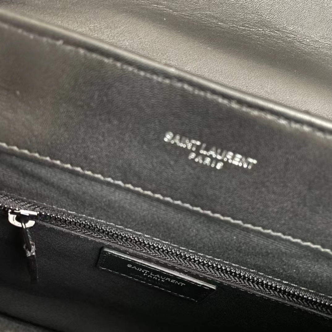 The standout feature is the polished silver-tone interlocking YSL logo plaque on the front, a hallmark of Saint Laurent’s heritage and modern edge. Available in the coveted mini size, this bag is perfectly compact for evening soirees, date nights, or elevated daily wear, yet spacious enough to hold your must-haves: phone, cardholder, keys, and lip gloss. It comes with a detachable, adjustable silver-tone chain strap that lets you style it as a crossbody, shoulder bag, or even a chic clutch for formal events.